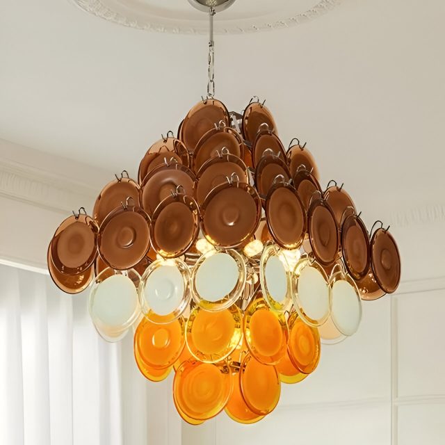 Step into a world where lighting becomes art. This stunning chandelier captures the vibrant spirit of French retro design, transforming any room into a gallery of light and color. Imagine delicate glass shades in beautiful hues, suspended like precious gems from a polished chrome frame. This isn’t just a light fixture—it’s a conversation piece that brings joy, elegance, and a touch of vintage glamour to your space.