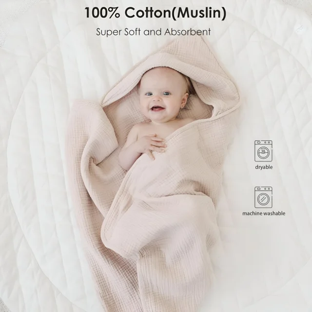 Wrap your baby in pure softness with our Muslin Baby Swaddle and Hooded Bath Towel—crafted from premium 4-layer organic cotton gauze. Designed for delicate newborn skin, this ultra-soft, breathable, and absorbent blanket provides the ultimate comfort for your baby. Whether you’re drying your little one after bath time or swaddling them for a peaceful sleep, this versatile baby essential is a must-have for every parent.