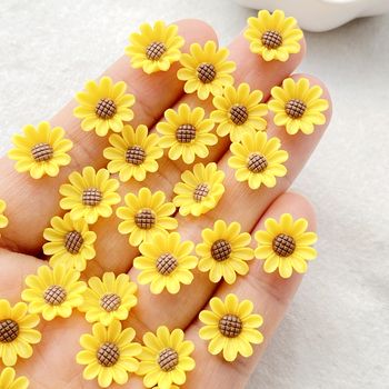 50Pcs Yellow Chrysanthemums Resin Nail Art Charms with Rhinestones – 3D Decorations