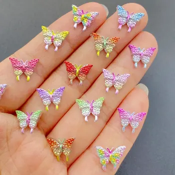 50pcs Colorful Resin Butterfly Rhinestones for Nails & DIY Crafts