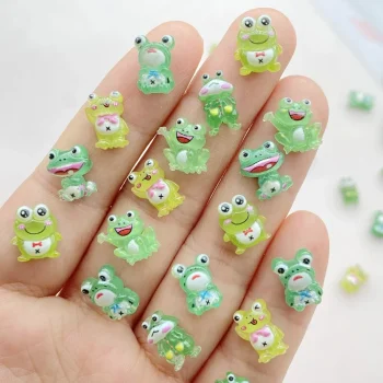 50pcs Mixed Resin Glitter Cute Green Frog Flatback Rhinestone Figurines for Nail Art & Crafts