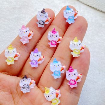 50pcs Colorful Mini Cat & Bow Resin Charms for DIY Crafts