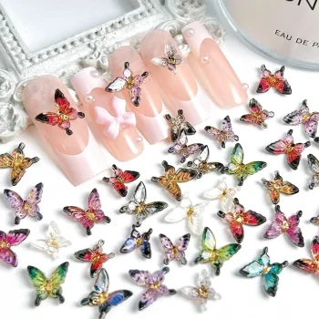 20PCS Vintage Butterfly Resin Nail Charms – 3D Creative Manicure Decorations