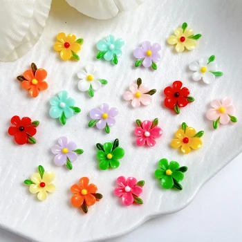 20PCS Colorful Resin Blossom Nail Charms – Transparent Four-Petal Flower Designs