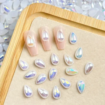 60PCS Gradient Raindrop Resin Nail Art Charms – 3D Water Drop Decorations for DIY Manicure