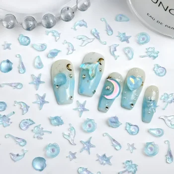 50PCS Ocean Theme Resin Nail Charms 3D Starfish Shell Conch Decorations