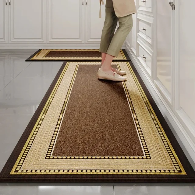 This runner is not just a mat – it’s a kitchen essential that blends practicality with style. The high-absorbency feature means it catches every spill, whether it’s oil splatters, water drips, or food particles. Its three-layer design shields your floor from scratches, scuffs, and potential damage caused by sharp objects like fragile dishes. The mat’s cushioned surface also helps reduce the strain on your feet, making it ideal for long hours spent in the kitchen.