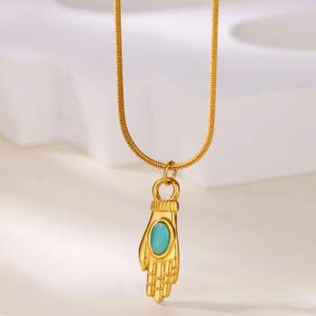 Gold Opal Hand Pendant Necklace for Women – Vintage Geometric Jewelry Gift