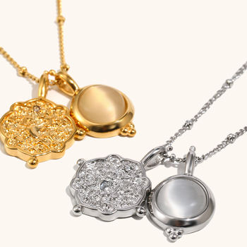 White Jade Round Pendant Gold-Plated Stainless Steel Necklace for Women