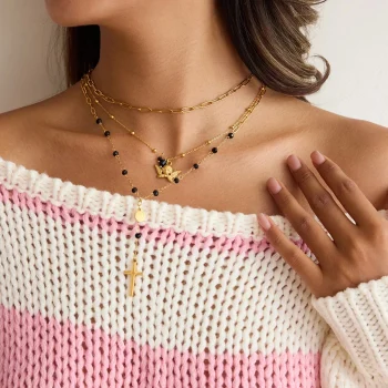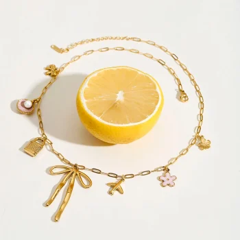 Sweet Bow Multi-Pendant Necklace 18K Gold Plated Stainless Steel Jewelry