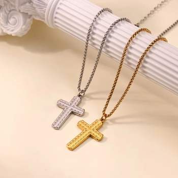 Vintage Stainless Steel Catholic Cross Amulet Necklace