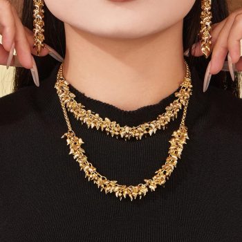 18K Gold-Plated Flower Zircon Necklace & Bracelet Jewelry Set for Women