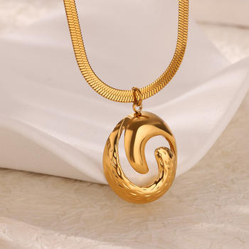 Gold Color Geometric Pendant Necklace – Stainless Steel Hollow Round Necklaces