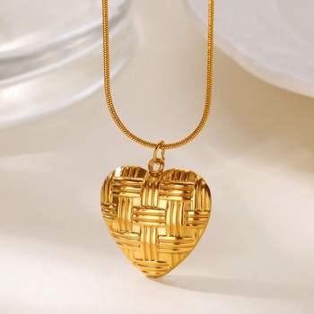 Geometric Heart Necklace for Women – Gold Stainless Steel Snake Chain Wedding Jewelry