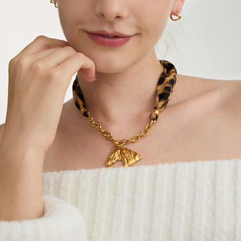Vintage Leopard Print Scarf & Horse Pendant Necklace – 18K Gold Plated Stainless Steel