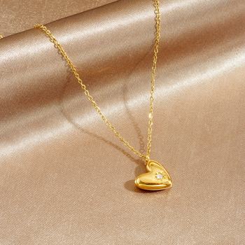Golden Heart Zircon Pendant Necklace – Stainless Steel Love Charm