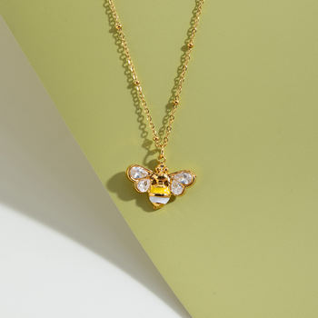 Sweet Bee Pendant Necklace with White Zircon – 18K Gold Plated