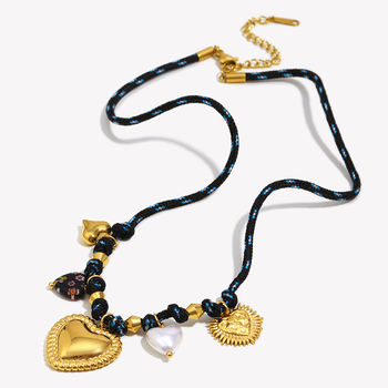 Waterproof Blue Rope Heart Charm Necklace – Stylish Bohemian Jewelry