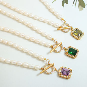 Freshwater Pearl Choker Necklace with Gold Pendant & Toggle Clasp