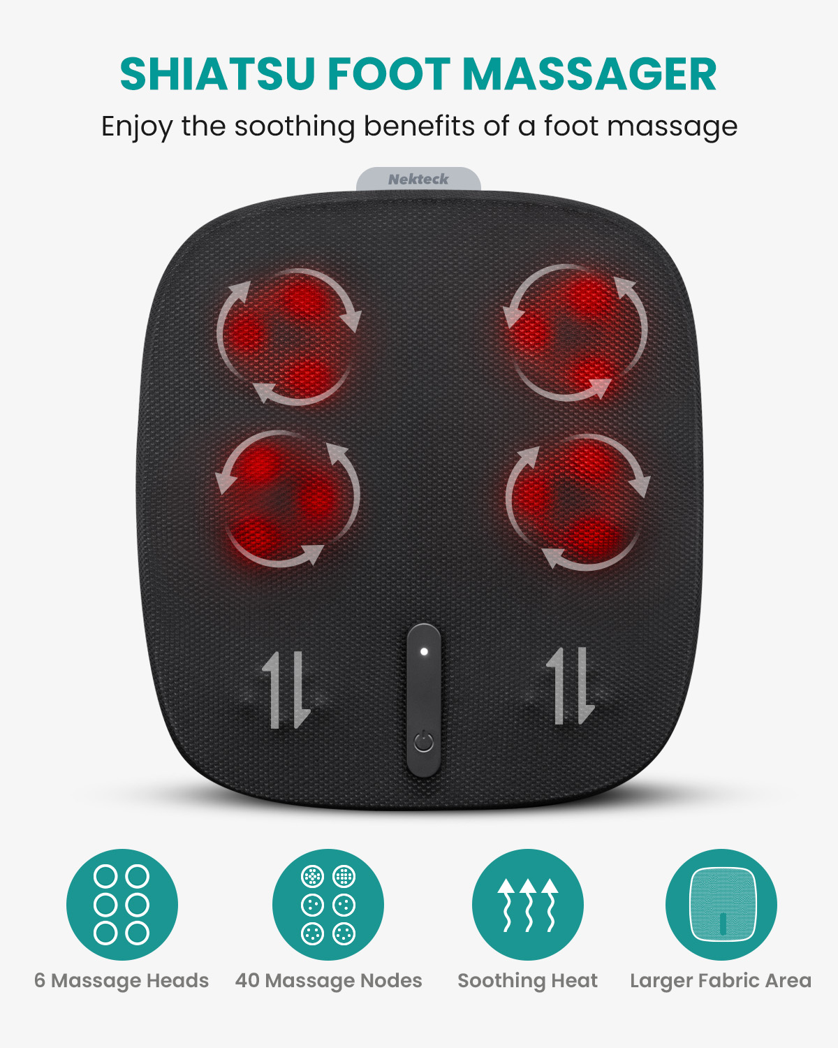 Step into ultimate relaxation after a long day with this Deep Kneading Shiatsu Foot Massager with Heat. Designed to melt away stress and tension, this advanced electric massager gives your feet the pampering they deserve. Equipped with 6 powerful massage heads and 40 rotating nodes, it delivers a deep, soothing kneading massage that targets every pressure point — from your heels to the balls of your feet.