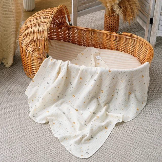 This baby muslin swaddle blanket is ideal for swaddling your newborn or infant after bath time, keeping them snug and dry. It’s also perfect for naptime or as a lightweight summer blanket to keep your little one cozy without overheating. Whether it’s a cool evening or a warm day, this blanket offers just the right balance of comfort and breathability. The multi-purpose design makes it an essential tool in your baby care routine, ready to serve for a variety of occasions.