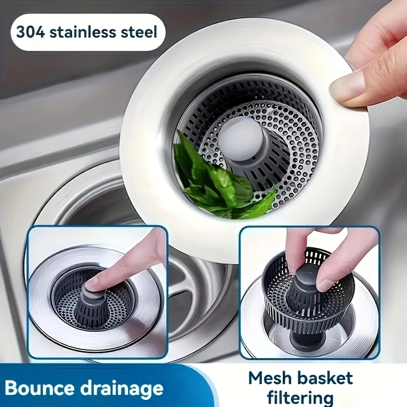 Say goodbye to messy sink blockages and unpleasant odors with the 3-in-1 Leak-Proof Sink Strainer & Bouncing Core Drain Filter – your ultimate kitchen essential for a cleaner, fresher, and more efficient sink. Designed with innovation and convenience in mind, this smart kitchen tool combines a bounce-core stopper, anti-clog filter, and odor-resistant seal all in one compact design. Perfect for any modern kitchen, it ensures your sink drains smoothly while keeping unwanted waste and insects away.