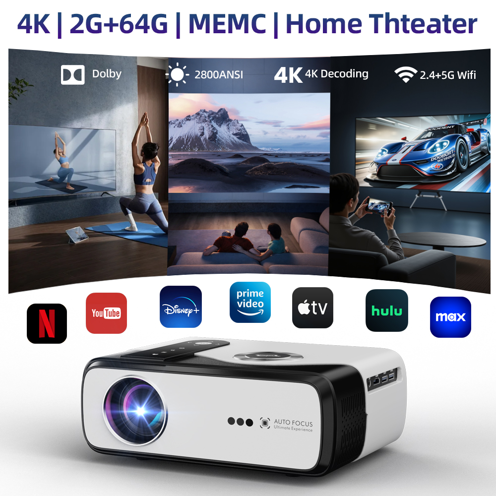 This projector is designed for those who want a premium home theater experience without bulky equipment. Its advanced LED light source with 2800 lumens brightness and a 28000:1 contrast ratio ensures vivid visuals even during the day. Auto focus and keystone correction make setup fast and stress-free, while the Android system with dual WiFi support allows you to enjoy streaming, gaming, and presentations effortlessly. Perfect for movie nights, gaming sessions, or professional presentations, it transforms any environment into a captivating cinematic space.