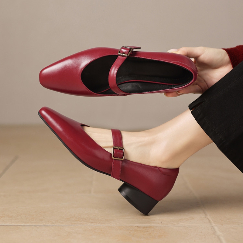 These Mary Jane-style shoes are designed with a chic and minimalistic aesthetic, featuring a concise belt buckle closure that not only enhances the look but ensures a secure fit. The 3 cm heel provides a comfortable lift without compromising on stability, making these shoes ideal for long hours of wear. Perfect for both autumn and spring, these shoes transition effortlessly between seasons, offering durability and timeless appeal.