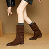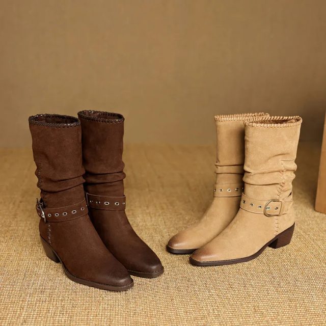 These mid-calf suede boots bring together classic charm and contemporary fashion. Their pleated design adds subtle texture, while the sleek square toe enhances your overall look with refined detail. Whether you’re heading out for coffee, strolling through the city, or dressing up for a night out, these boots will be your go-to companions for effortless style. Designed to fit true to size and made with high-quality materials, they offer the ideal balance of comfort, durability, and elegance.