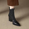 These fashion-forward ankle boots feature a sleek pointed toe and a stable chunky heel that not only adds height but also ensures comfortable wear all day long. With a timeless silhouette and refined stitching, they’re perfect for styling with skinny jeans, midi skirts, or tailored trousers. Designed without bulky metal toe caps or waterproof lining, the minimalist charm and breathable feel keep your look light and graceful, even in the transitional seasons.