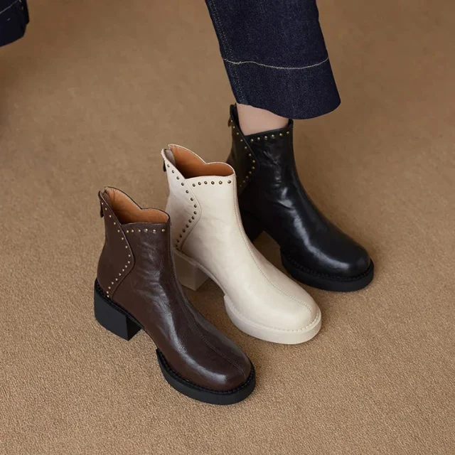 What truly sets these boots apart is the unique mix of fashion-forward rivets, luxurious leather, and a bold platform heel — making them a must-have for anyone who doesn’t just follow trends but defines them.