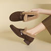 These loafers feature a classic round-toe shape and a low 1–1.2 inch heel that supports natural walking comfort. Whether you’re heading to work, running errands, or meeting friends for a relaxed outing, these shoes are your go-to choice for casual winter days. The slip-on design makes them quick and easy to wear, while the solid craftsmanship and hand-stitched details elevate their overall look. With their timeless design and versatile black suede exterior, they’re perfect for pairing with jeans, leggings, winter skirts, and cozy sweaters.