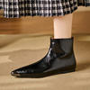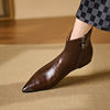 Crafted from premium split leather and lined with genuine leather, these boots offer a luxurious feel inside and out. The metal pointed toe decoration adds a bold, fashion-forward touch, while the sleek zipper closure ensures a secure and effortless fit. With a flat 0.4-inch heel and TPR outsole, these ankle boots deliver excellent grip and comfort for long hours of wear. Designed to fit true to size, they rest comfortably just above the ankle, offering the perfect blend of coverage and flexibility.