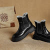 These boots feature a round toe for natural comfort, a convenient zip closure, and a secure ankle-height fit that keeps warmth inside. The wool lining and wool insole wrap your feet in cozy softness, while the handmade platform design adds stability and charm. Split leather gives a rich, textured look that ages beautifully, and the clean solid pattern makes them easy to pair with everything—from jeans to dresses.
