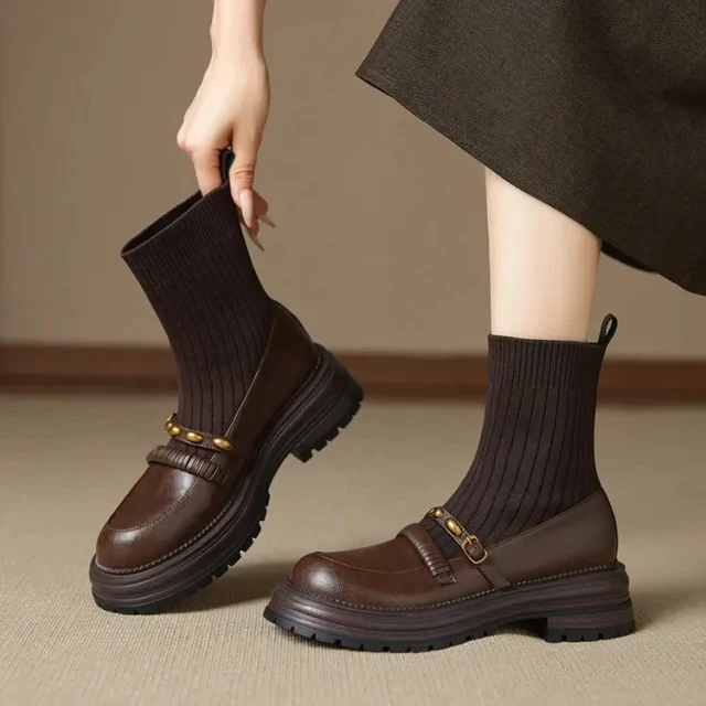 Made from quality split leather, these boots offer a smooth, slightly textured finish that adds a touch of sophistication to your outfit. The sleek round toe design gives your toes plenty of room to breathe, while the platform sole adds a subtle boost to your height—without compromising on all-day comfort. With no metal toe caps or waterproofing, these boots are designed for dry autumn days and fashion-forward occasions.