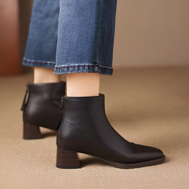 These boots combine high-quality materials with thoughtful craftsmanship. The split-leather upper and shaft offer durability and a soft texture, while the pigskin insole provides natural breathability and comfort for all-day wear. A convenient side zipper makes them easy to slip on and off, and the square-toe silhouette adds a modern edge to any outfit. The medium 1.77-inch heel gives you height without sacrificing stability, thanks to the chunky square heel design. With a solid pattern, classic ankle height, and clean stitched details, these boots give you a refined, sophisticated finish.