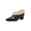 Winter Retro Pointed Toe Leather Loafers with Mid Heels for Women