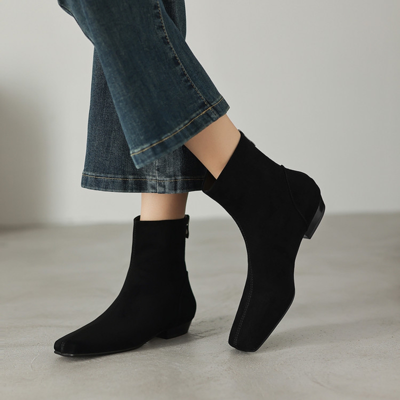 These ankle boots are perfect for daily wear, whether you’re at the office, running errands, or going out with friends. The square toe gives them a contemporary, sleek look, while the chunky heel ensures you have just the right amount of height without compromising comfort. The fleece lining inside ensures warmth, making them a go-to choice for cold winter days. The zip closure not only adds to the style but also allows for easy on and off, making them perfect for busy mornings.
