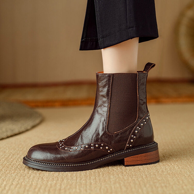 Step into the cooler seasons with confidence and character. These retro-inspired ankle boots are designed for women who value both style and comfort. Crafted from genuine leather, they bring a polished yet relaxed look that works effortlessly from day to night. The round toe and subtle brogue details add a classic charm, while the chunky heel gives you stability and a modern edge.