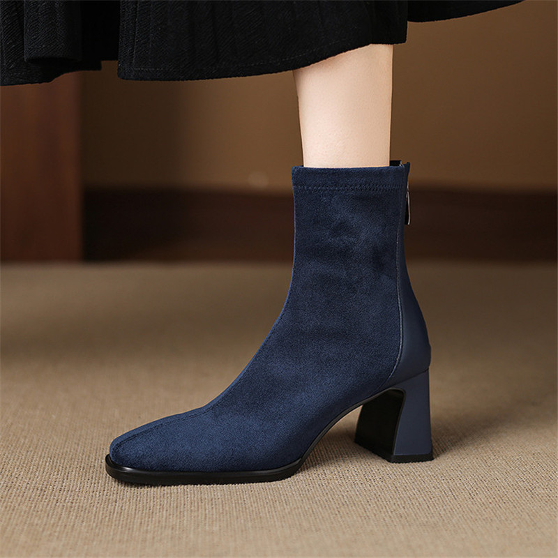 The combination of the bold square toe and sleek skinny boot design makes these ankle boots stand out from the rest. They’re not just another pair of heels—they’re a statement piece that balances fashion with everyday practicality. Their ability to transition seamlessly between looks makes them a must-have for women who love a shoe that works as hard as they do.