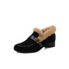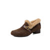 Winter Women Loafers Suede Leather Chunky Heel Slip-On Shoes