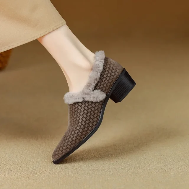 Unlike ordinary pumps, these shoes combine elegance with practicality. The wool lining keeps your feet warm during chilly days while maintaining breathability. The chunky heel offers both style and balance, perfect for daily wear without discomfort. Their slip-on design and versatile colors make them effortless to pair with jeans, skirts, or dresses, giving you a polished look in seconds.
