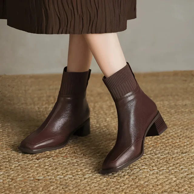 Step into effortless style with these modern women’s square toe boots designed for daily comfort and timeless appeal. Crafted from real sheepskin leather with a soft knitted fabric touch, these boots bring together warmth, style, and durability in one sleek design. The square toe gives a contemporary look, while the chunky 2-inch heel adds just the right amount of lift without sacrificing comfort. Whether you’re heading to work, running errands, or enjoying a casual weekend outing, these boots are made to move with you.