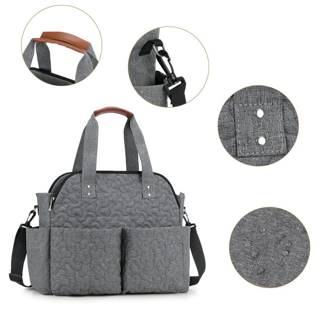 Crafted from durable fabric with a smooth zipper closure, this mommy tote is made to handle busy days without feeling bulky. The medium-sized structure offers generous room while staying comfortable to carry by hand or over one shoulder. With a balanced weight of about 2.1 lb, it feels light even when packed with baby essentials.