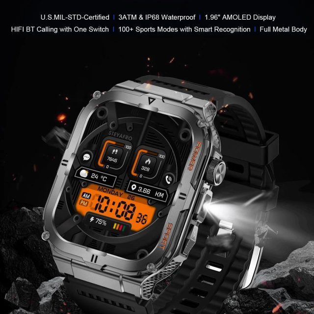This smartwatch stands out because it blends performance with everyday convenience. It’s best used during workouts, outdoor adventures, busy workdays, or anytime you want to monitor your health and stay organized. The combination of a flashlight, calling features, advanced health tracking, and 100+ sports modes makes it more than a watch — it’s your personal assistant on your wrist.