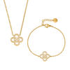 Crafted from durable stainless steel and finished with a rich 18K gold-colored PVD plating, this set offers lasting shine and everyday comfort. The smooth, skin-friendly finish feels lightweight and easy to wear, while the flower design adds a soft, feminine touch. The matching necklace and bracelet create a coordinated look that feels intentional and effortlessly chic.