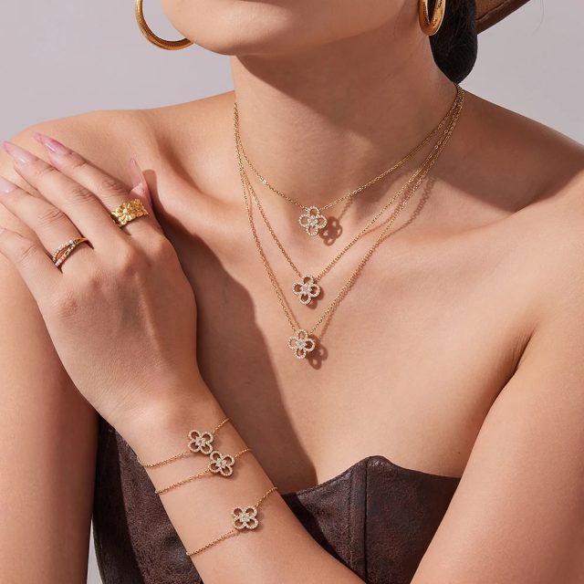 This jewelry set is special because it balances elegance with versatility. It is bold enough to stand out at parties, weddings, and evening events, yet subtle enough to wear with casual or work outfits. The flower design symbolizes beauty and grace, making it a thoughtful choice for yourself or as a gift. Unlike ordinary fashion jewelry, this set is designed to keep its shine and resist fading, so it looks beautiful wear after wear.