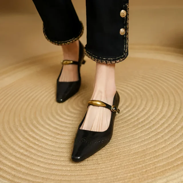 Step into timeless style with these beautifully crafted women’s pumps designed to elevate your everyday look. Made from soft, genuine leather inside and out, these shoes offer a refined appearance with a comfortable feel you’ll love from morning to evening. The pointed toe creates a sleek, feminine silhouette, while the delicate buckle strap adds a classic Mary Jane touch that never goes out of fashion. Whether you’re heading to work, meeting friends, or enjoying a relaxed day out, these pumps bring understated elegance to every step.
