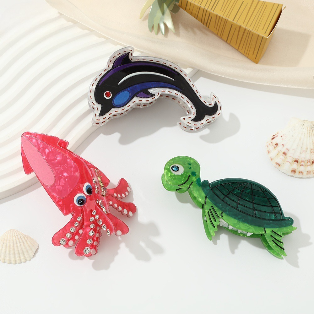 Make every hairstyle a statement with these Underwater Animal Hair Claw Clips. Designed with playful dolphins, graceful squids, and charming turtles, each clip captures the beauty of ocean life while adding a stylish, modern touch to your everyday look. Crafted from durable acetate, these hair claws are lightweight, strong, and built to hold your hair comfortably throughout the day.