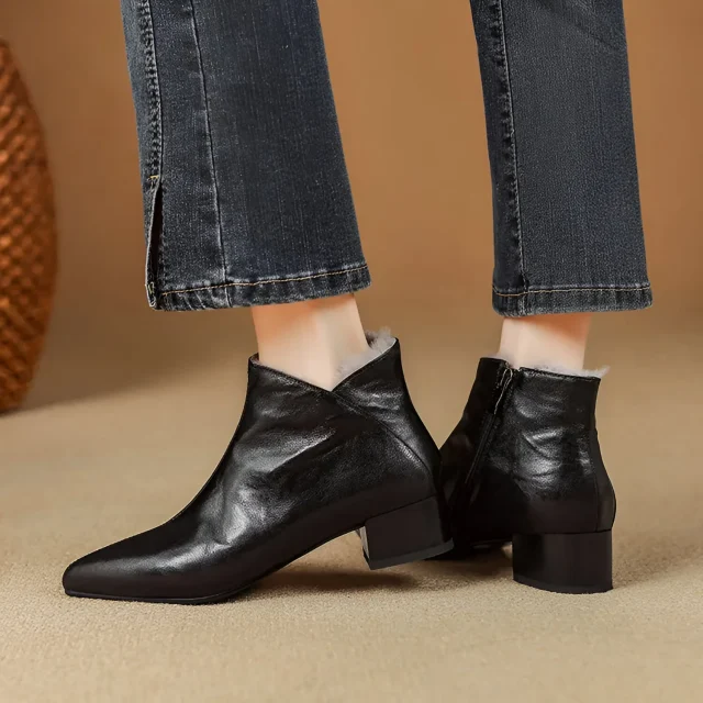 These winter ankle boots are not only functional but also incredibly fashionable. With a sleek and modern design, they pair perfectly with jeans, skirts, or dresses, making them an easy addition to any wardrobe. The pointed toe adds a touch of sophistication, while the soft wool lining ensures your feet stay warm no matter how cold it gets outside. Whether you’re running errands or heading out for a night on the town, these boots are designed to keep you looking stylish and feeling comfortable all day long.